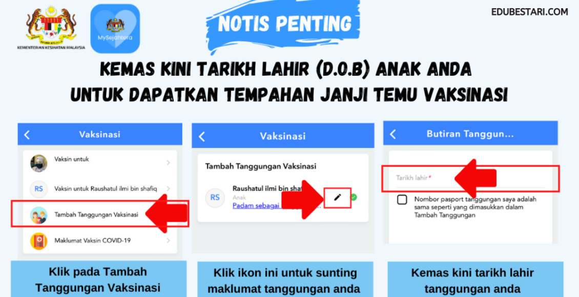 Panduan Kemaskini Tarikh Lahir Anak Di MySejahtera Untuk Dapatkan Tempahan Janji Temu Vaksinasi