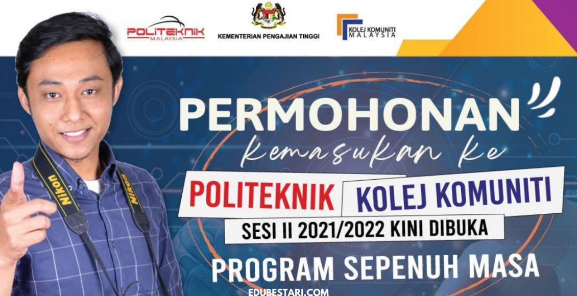 Permohonan kemasukan ke Politeknik dan Kolej Komuniti sesi II 2021/2022 dibuka sepanjang tempoh berikut: