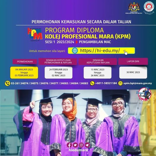 Permohonan Kemasukan Program Diploma Kolej Profesional MARA (KPM) Dibuka