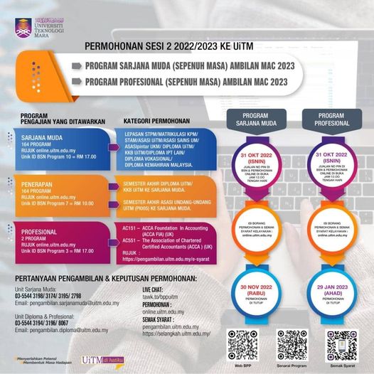 - Program Sarjana Muda: 31 Oktober 2022 hingga 30 November 2022