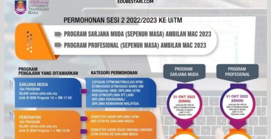 - Program Sarjana Muda: 31 Oktober 2022 hingga 30 November 2022