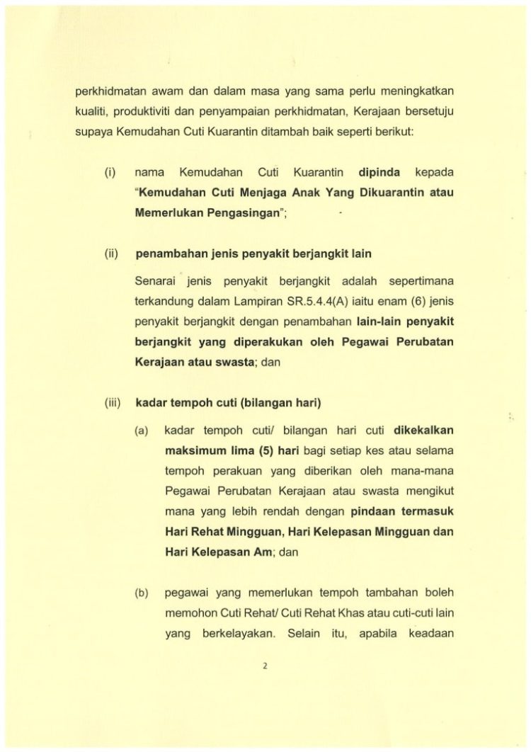 Ikuti perkongsian di bawah untuk maklumat lanjut penambahbaikan kemudahan cuti kuarantin.