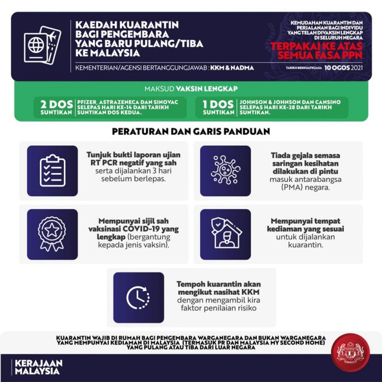 - Bagi vaksin jenis 2 dos suntikan: Mesti melepasi hari ke-14 dari tarikh suntikan