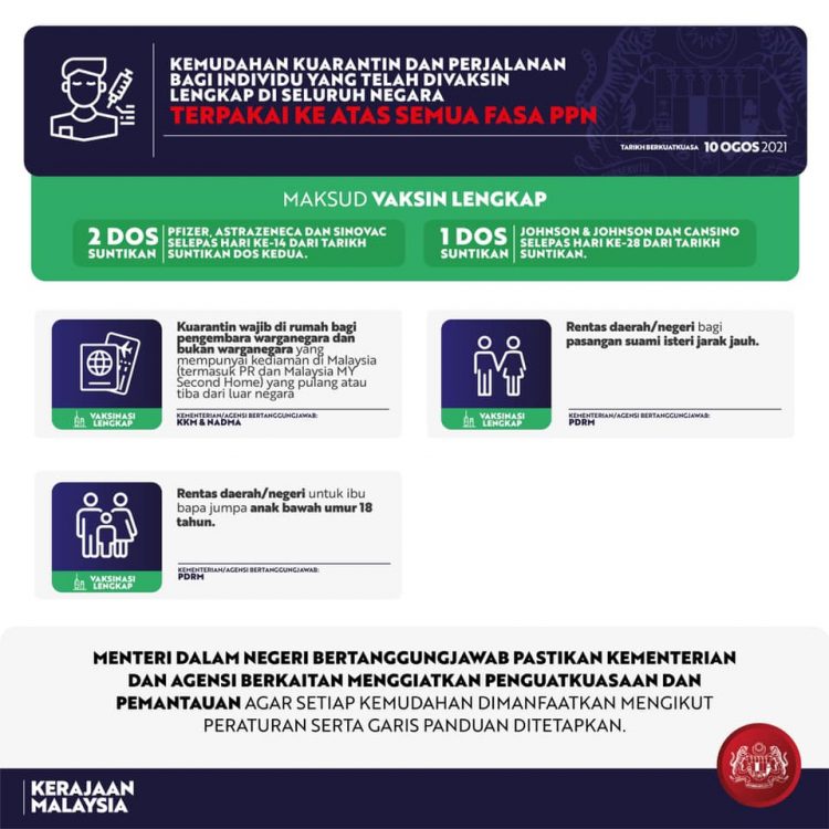 Terkini: Kebenaran Rentas Negeri & Senarai Kemudahan Buat Individu Lengkap 2 Dos Vaksin