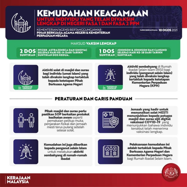 ii) Dibenarkan beribadah di surau, masjid dan rumah ibadat agama lain