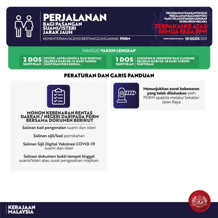 Kerajaan pada hari ini telah mengumumkan sedikit kelonggaran SOP individu yang telah menerima 2 dos vaksin lengkap. Pasti ramai yang tidak sabar kan nak tahu kemudahan tersebut? Terutama berkenaan kebenaran rentas daerah dan negeri.