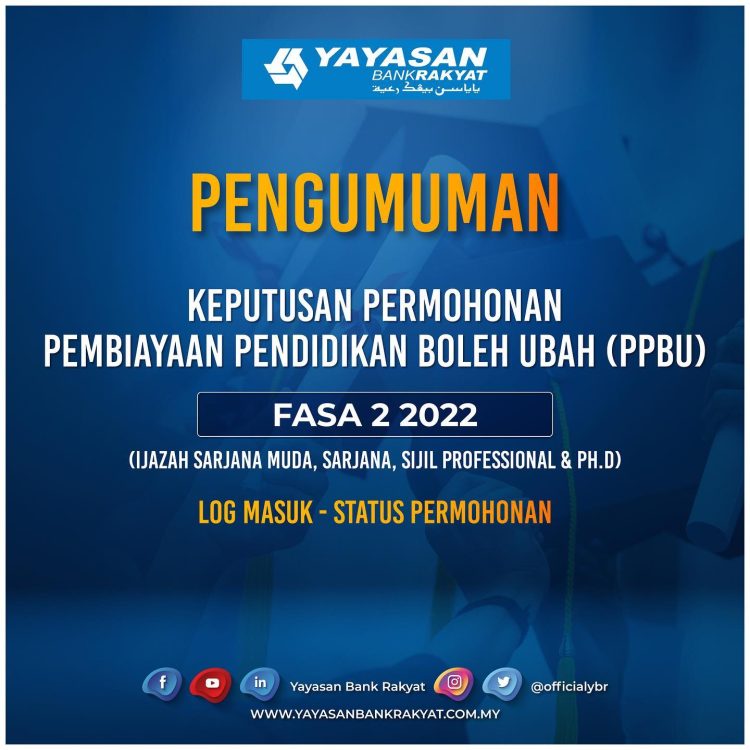 Semakan keputusan permohonan pembiayaan Pendidikan Boleh Ubah (PPBU) Fasa 2 2022 boleh dibuat pada: