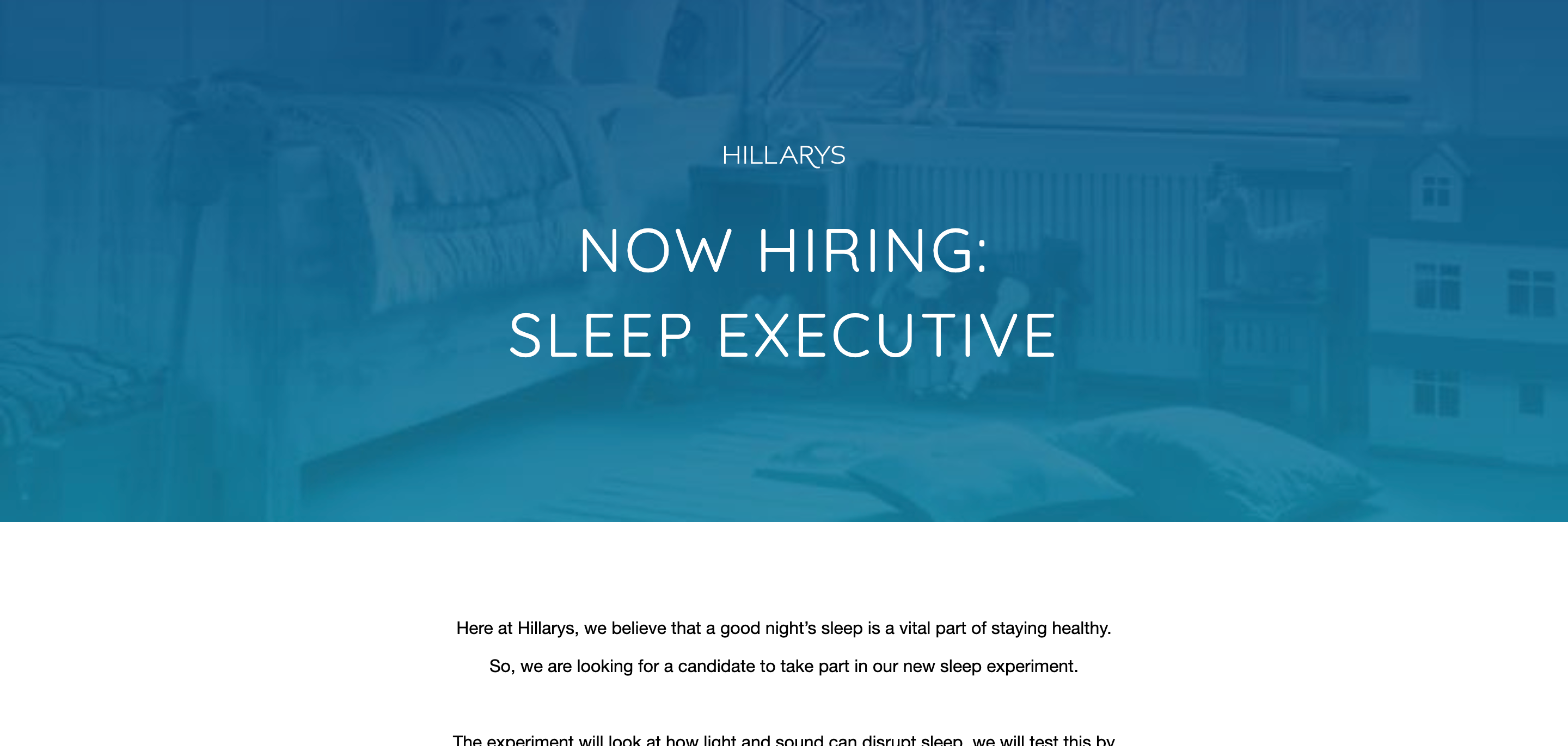 Dalam satu iklan yang dikeluarkan baru-baru ini, sebuah syarikat pembekal kelengkapan rumah Hillarys daripada United Kingdom membuka jawatan baru sebagai “Sleep Executive” dengan gaji sehingga RM100,000.