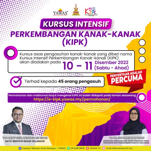 Program Kursus Insentif Perkembangan Kanak-Kanak (KIPK) merupakan kursus asas bidang pengasuhan dan penjagaan kanak-kanak yang telah dilaksanakan bermula tahun 2013.
