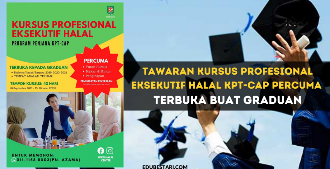Sehubungan itu, pihak Kolej UNITI Port Dickson dengan berbesar hati mempelawa semua graduan ijazah sarjana muda dan diploma yang bergraduat pada tahun 2019, 2020 dan 2021 serta masih belum mendapat pekerjaan untuk mengikuti program KURSUS HALAL EKSEKUTIF PROFESIONAL yang ditawarkan secara PERCUMA tanpa sebarang bayaran.