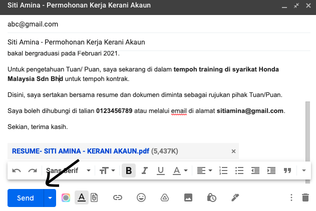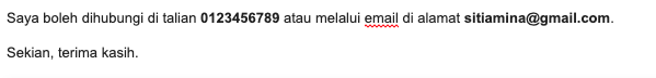 Dah tulis alamat email dan subject, mula tulis email yang mengandungi: