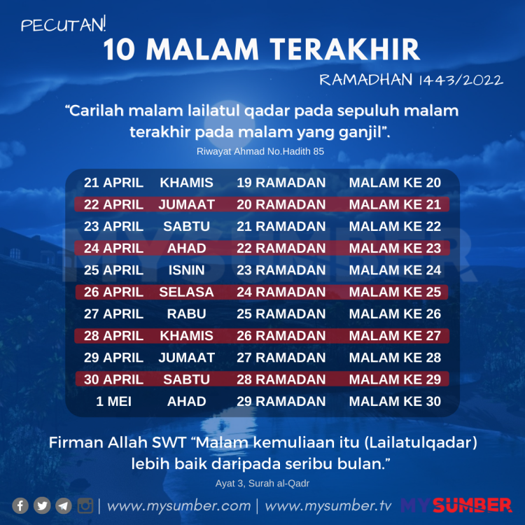 TARIKH 10 MALAM TERAKHIR RAMADHAN 2021