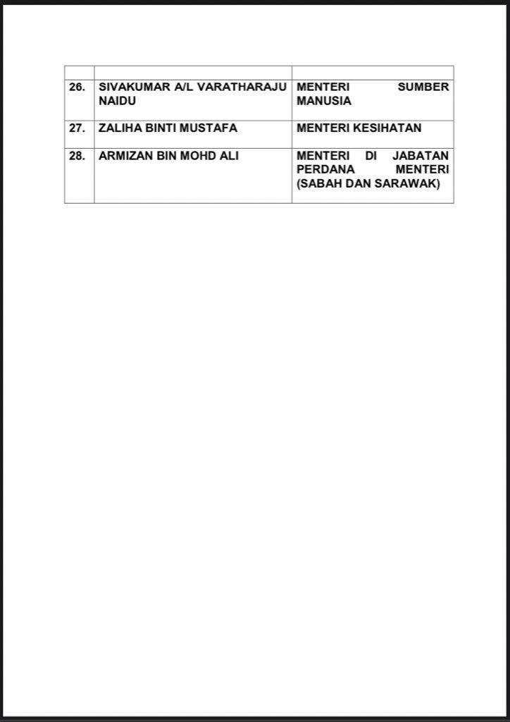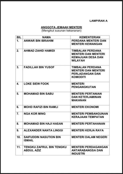 Anda boleh download senarai lengkap Menteri Kabinet Datuk Seri Anwar Ibrahim melalui pautan disediakan di bawah.