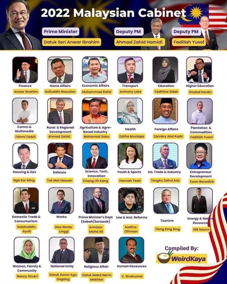 SENARAI PENUH MENTERI KABINET MALAYSIA 2022