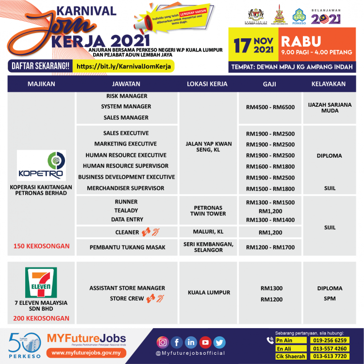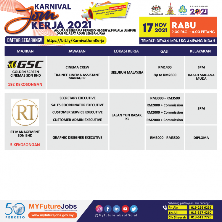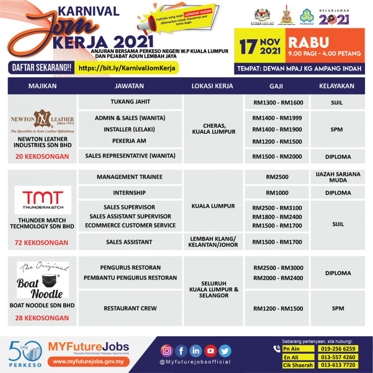 Ikuti perkongsian di bawah untuk maklumat lebih lanjut berkenaan karnival kerjaya yang dilaksanakan dan cara buat pra-pendaftaran bagi yang berminat untuk sertai.