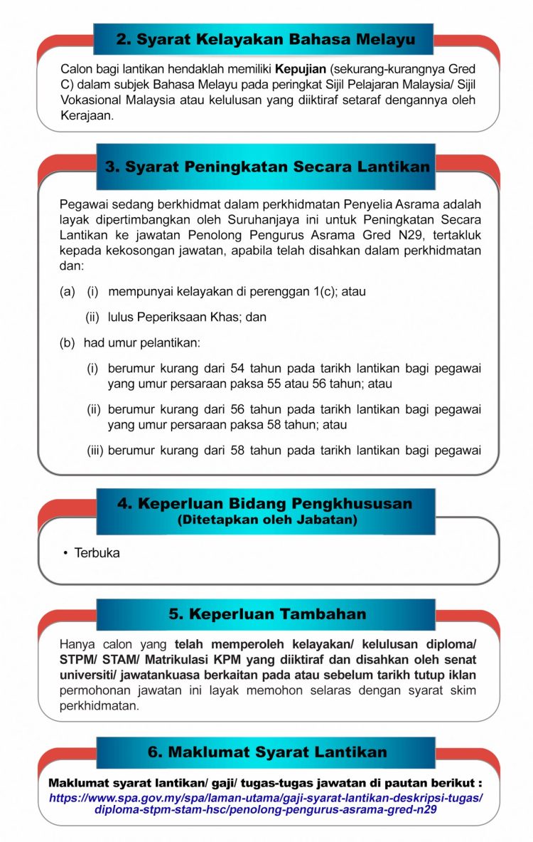 - Nama jawatan: Penolong Pengurus Asrama N29