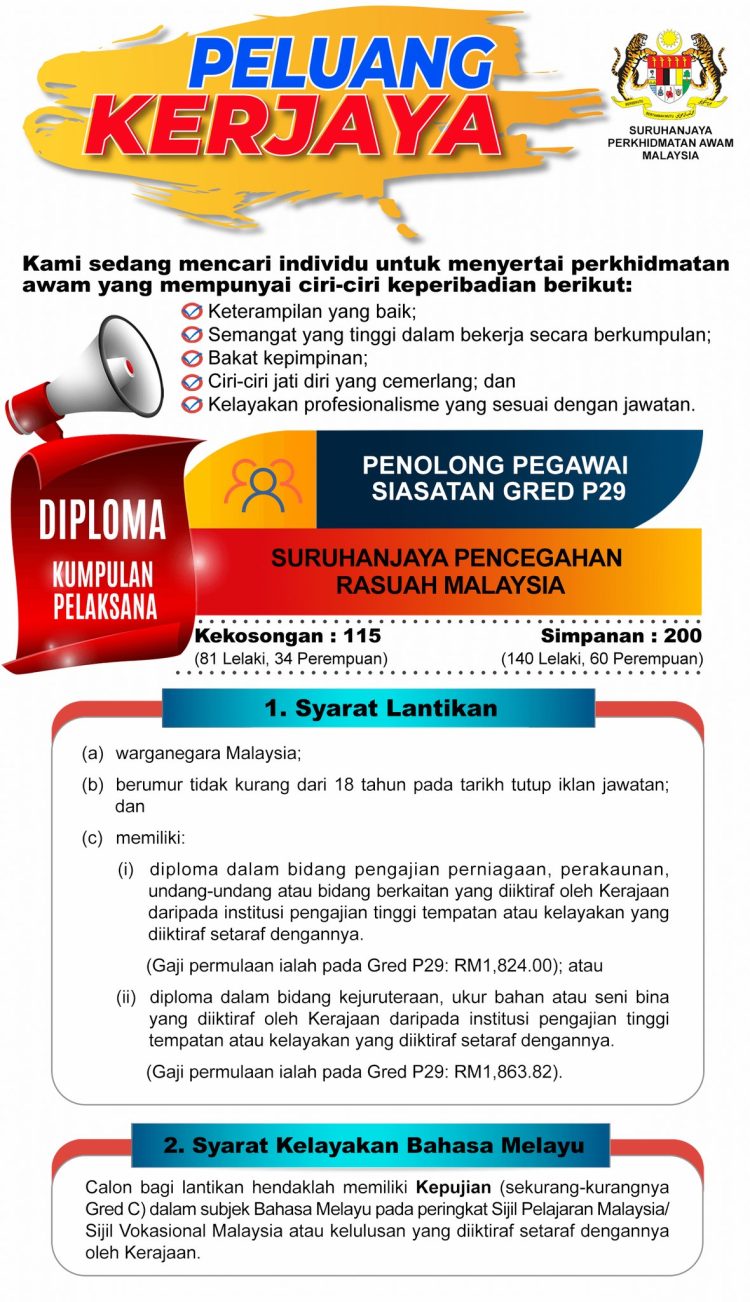 Tawaran 100+ Kekosongan Jawatan Penolong Pegawai Siasatan SPRM, Ini Cara Mohon
