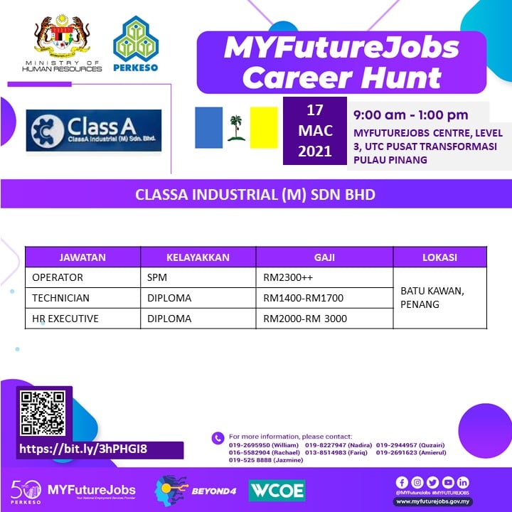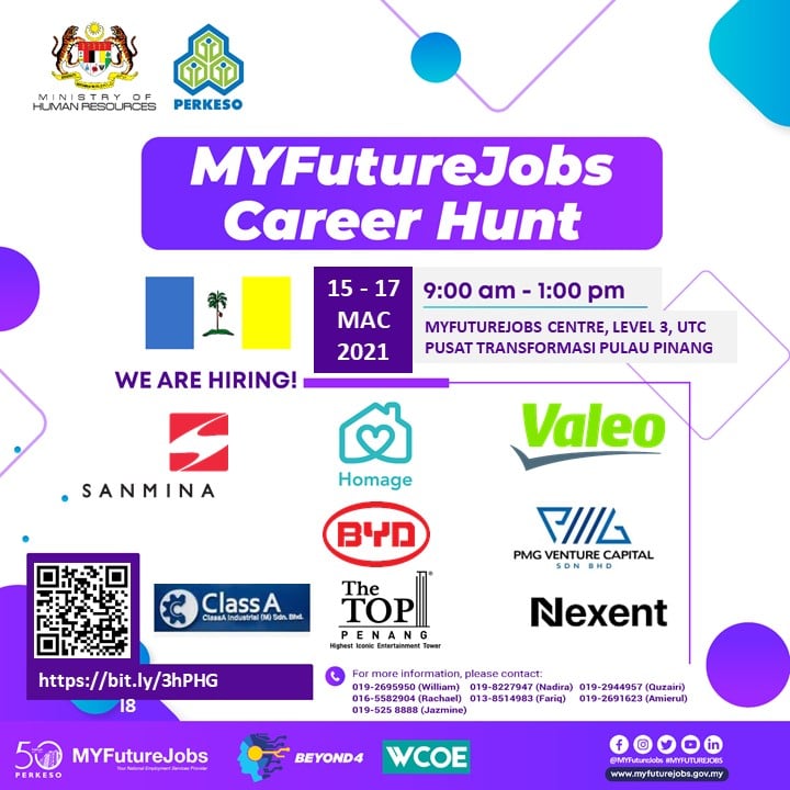 - Lokasi: MYFutureJobs Centre, Level 3, UTC Pusat Transformasi Pulau Pinang