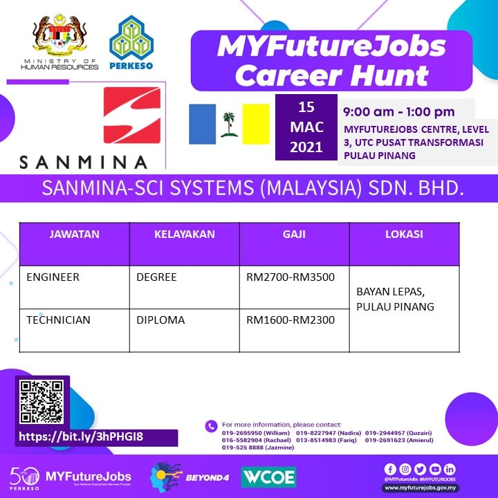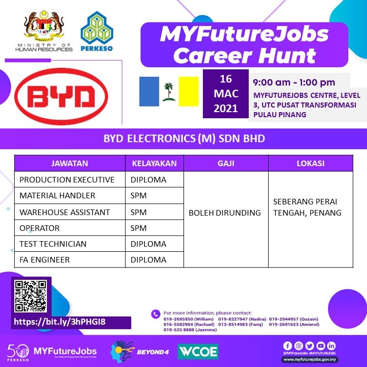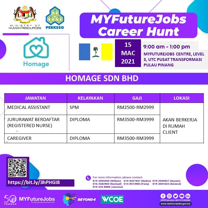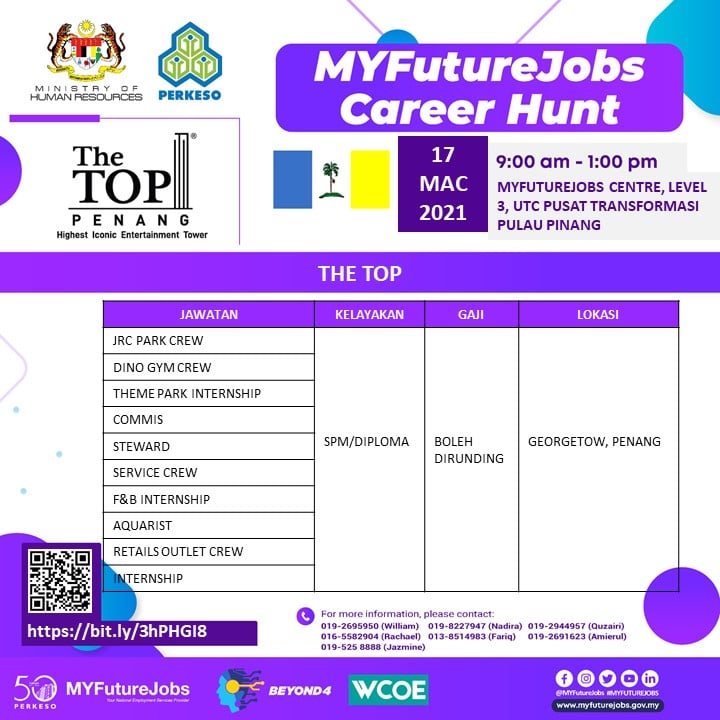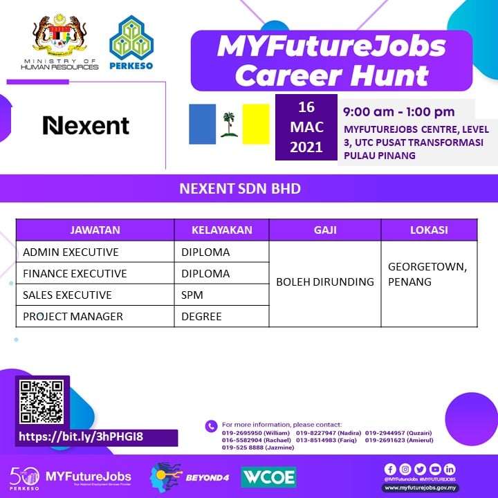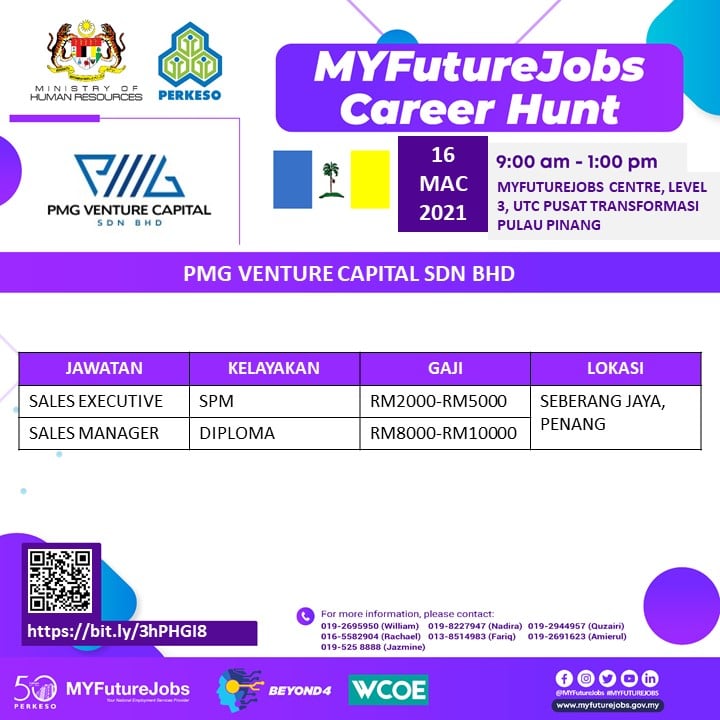 - Lokasi: MYFutureJobs Centre, Level 3, UTC Pusat Transformasi Pulau Pinang