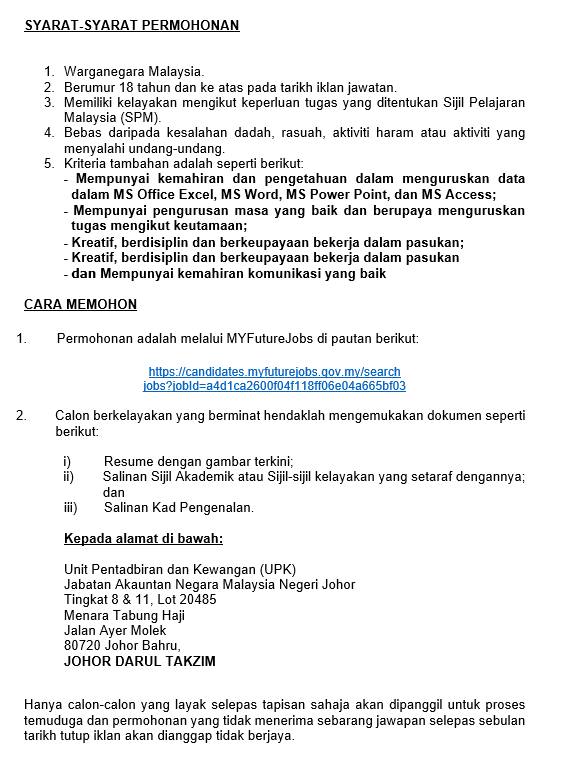 | Majikan | Jabatan Akauntan Negara Malaysia (JANM) Johor |
