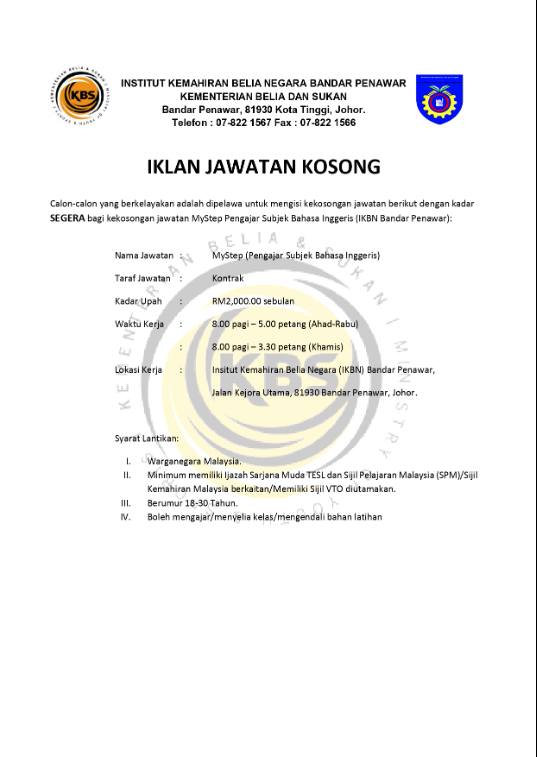 - Nama jawatan: MyStep (Pengajar Subjek Bahasa Inggeris)
