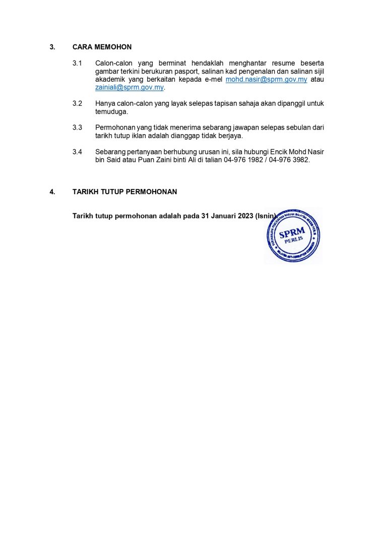 • Nama majikan: Suruhananjaya Pencegahan Rasuah Malaysia (SPRM)