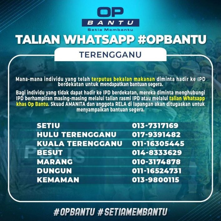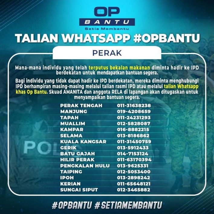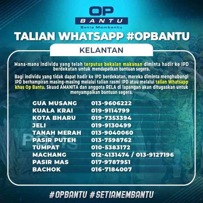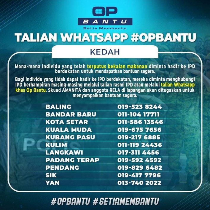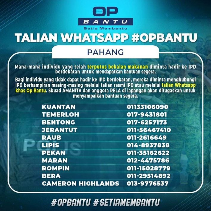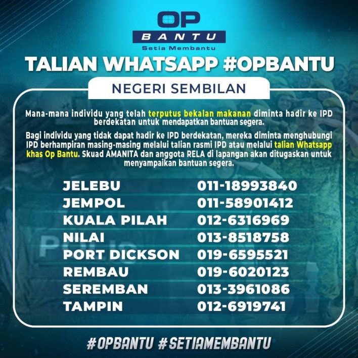 - Bagi individu yang tidak dapat hadir ke IPD berdekatan, mereka diminta menghubungi IPD berhampiran masing-masing melalui talian rasmi IPD atau melalui talian Whatsapp khas Op Bantu.