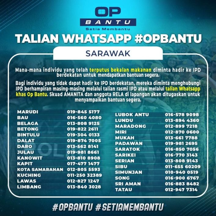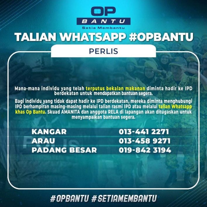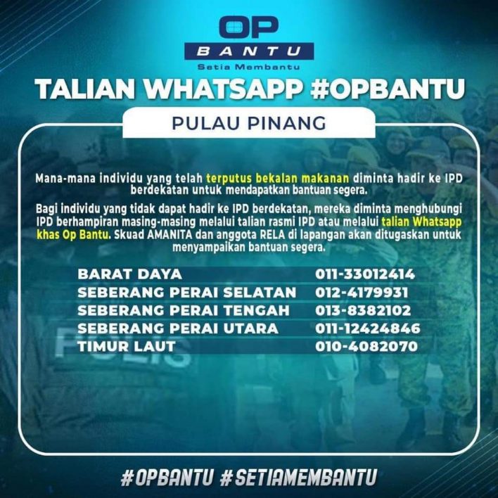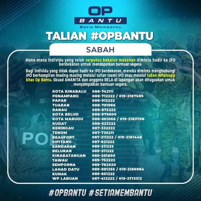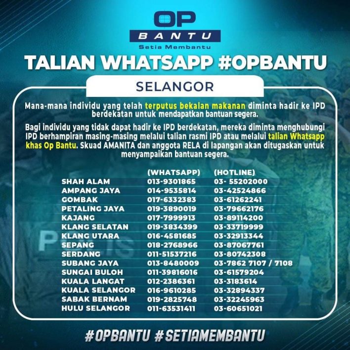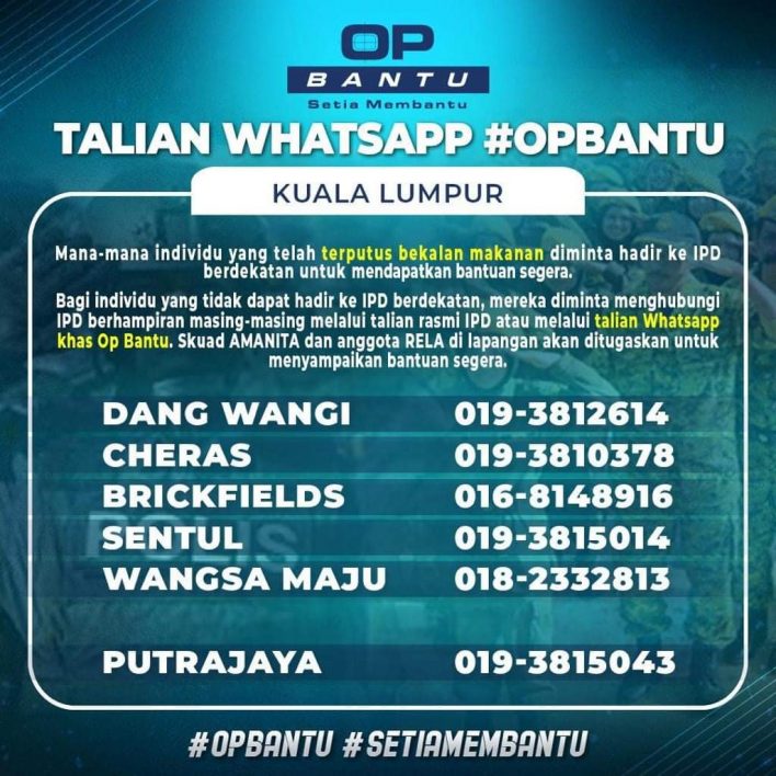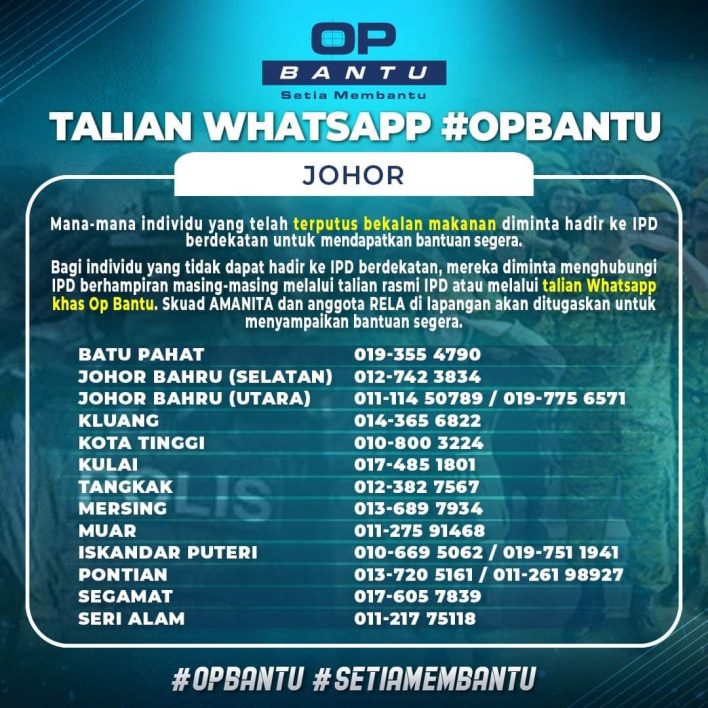 - Bagi individu yang tidak dapat hadir ke IPD berdekatan, mereka diminta menghubungi IPD berhampiran masing-masing melalui talian rasmi IPD atau melalui talian Whatsapp khas Op Bantu.