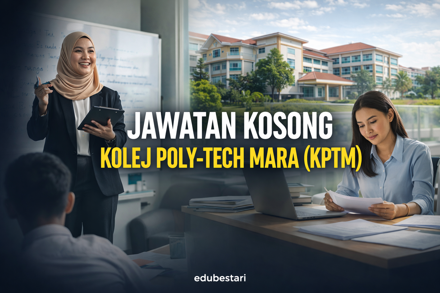 Jawapan Pantas:Kolej Poly-Tech MARA (KPTM) Bangi membuka peluang kerjaya bagi jawatan Pensyarah Pengajian Umum dan Kerani. Permohonan dibuka sehingga 14 April 2026...