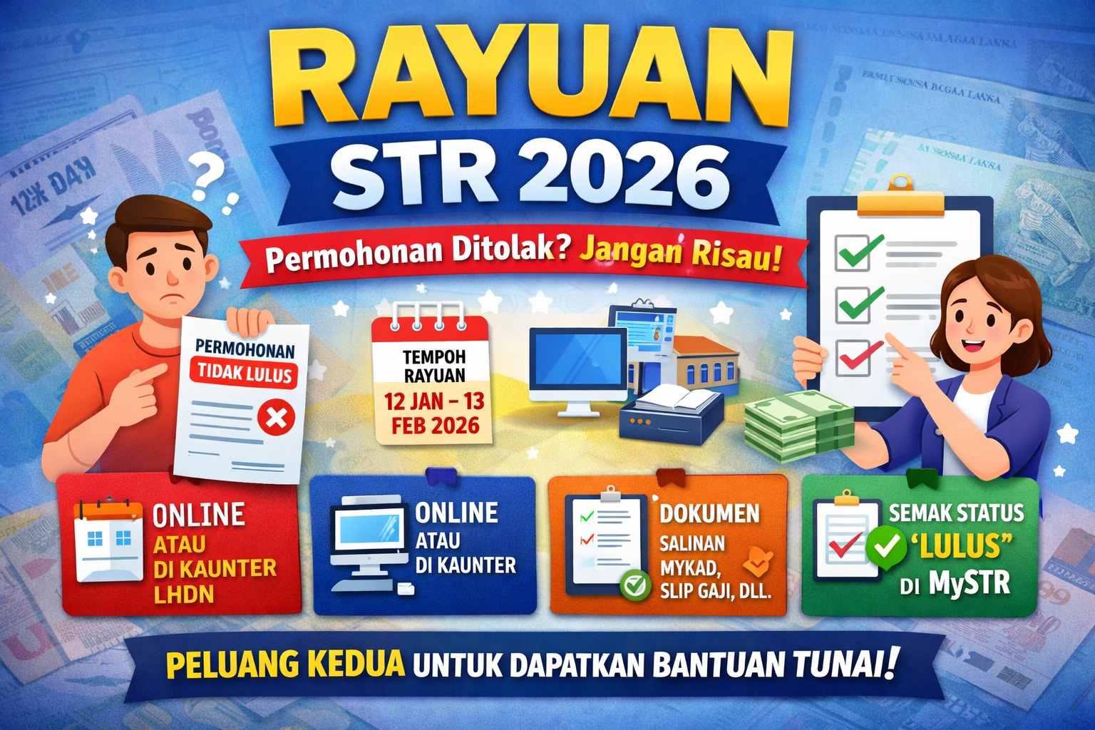 Permohonan Sumbangan Tunai Rahmah (STR) 2026 yang ditolak bukan bermakna anda terus hilang kelayakan. Ramai pemohon sebenarnya ditolak kerana kesilapan teknikal, seperti maklumat tidak tepat atau dokumen tidak lengkap β bukan kerana tidak layak. Berita baiknya, kerajaan melalui Lembaga Hasil Dalam Negeri Malaysia (LHDNM / HASiL) telah membuka tempoh rayuan rasmi STR 2026 bagi memberi […]