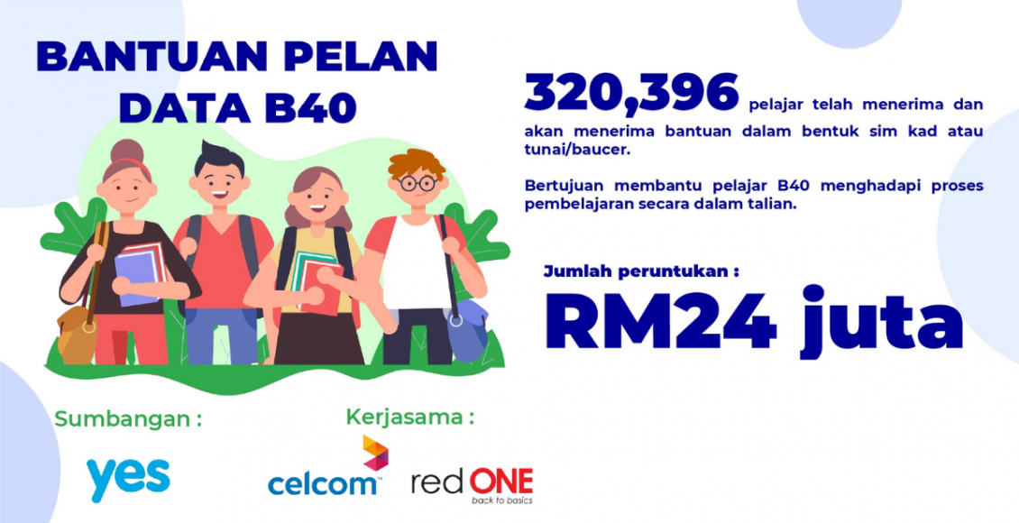 320,396 pelajar telah menerima dan akan menerima bantuan dalam bentuk sim kad atau tunai/baucer. Bantuan pelan data adalah bertujuan membantu pelajar B40 menghadapi proses pembelajaran secara dalam talian secara lebih mudah tanpa sebarang kesusahan.