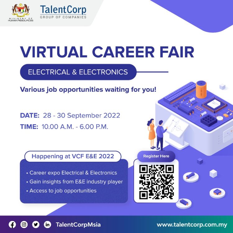 Panggilan buat para pencari kerja terutama belia di seluruh Malaysia! Talent Corporation Malaysia Berhad (TalentCorp) bakal menganjurkan pameran kerjaya maya berfokus kepada sektor elektrik dan elektronik (E&E) selama 3 hari bermula 28 September 2022.