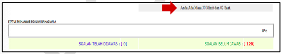 - Calon diberi ingatan berkenaan baki tempoh masa menjawab pada setiap bahagian
