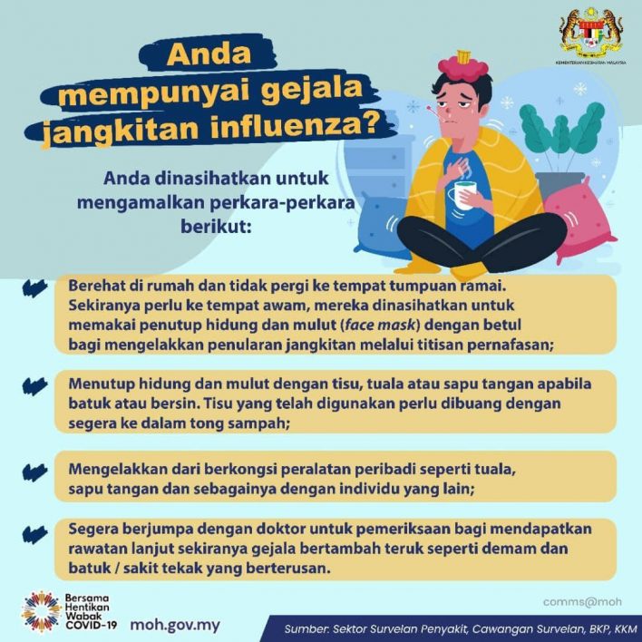 Ikuti perkongsian di bawah untuk ketahui gejala influenza dan cara membuat ujian kendiri bagi kenalpasti influenza.