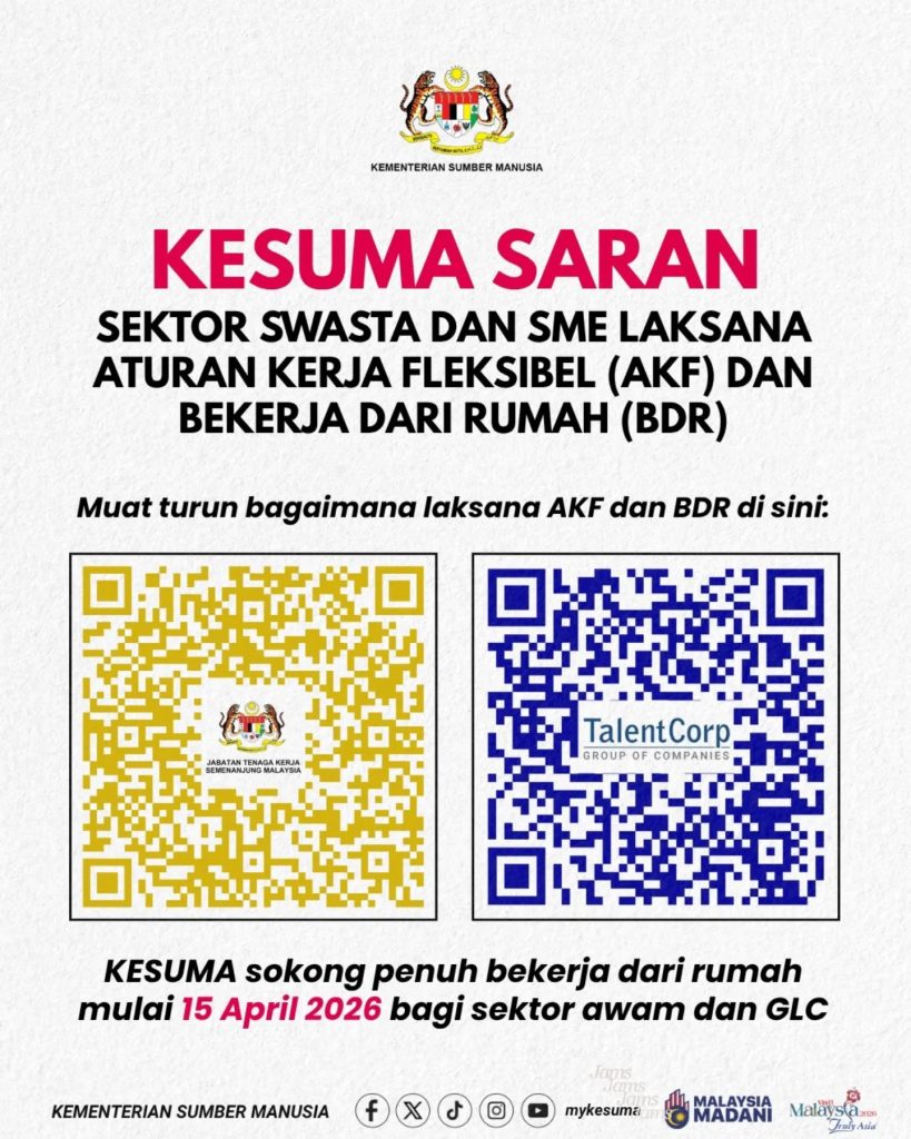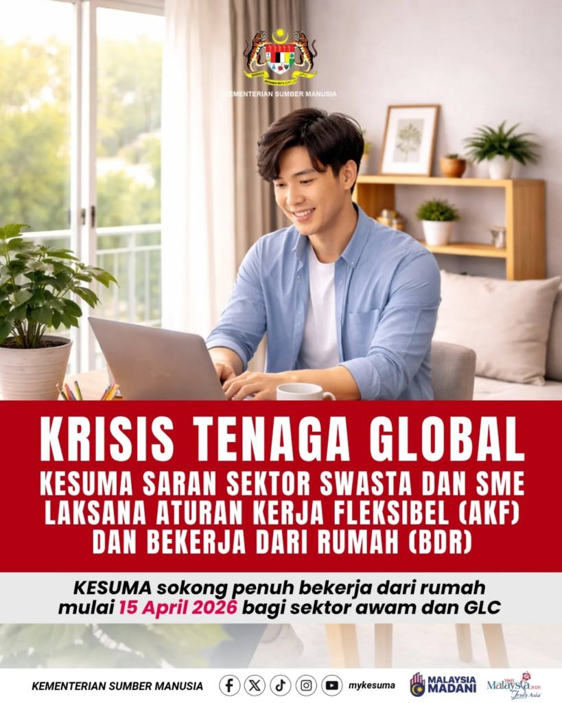 Melalui Kementerian Sumber Manusia (KESUMA), kerajaan telah menekankan kepentingan fleksibiliti dalam pekerjaan termasuk pilihan untuk bekerja dari rumah (BDR). Langkah ini bukan sahaja memberi manfaat kepada pekerja, malah membantu majikan mengurus operasi dengan lebih efisien.