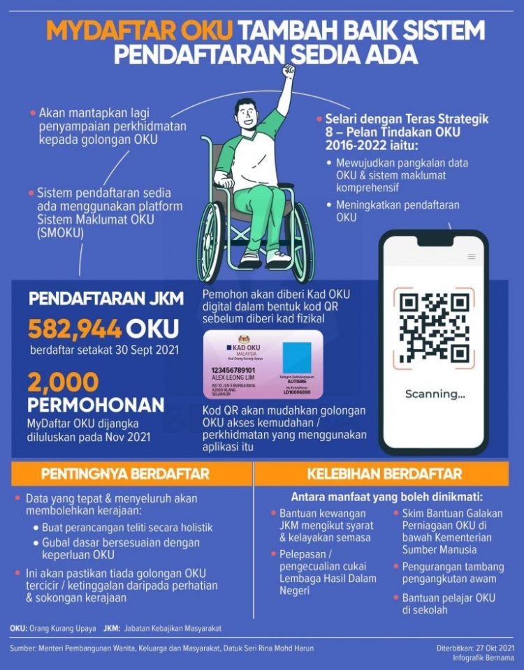 MyDaftar OKU telah diperkenalkan bagi memberi kemudahan untuk buat pendaftaran individu OKU secara atas talian.