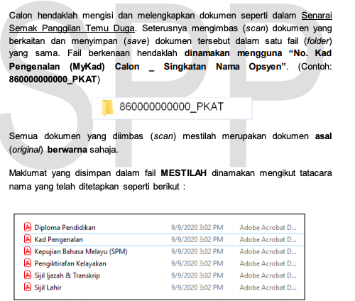 Buat 1 Folder di Google Drive anda dengan nama folder letak Nombor Kad pengenalan (tanpa sengkang)_kod opsyen yang dipohon. Dalam folder itu, masukkan semua dokumen yang telah discan dengan menggunakan format pdf dan NAMAKAN fail dengan tepat.