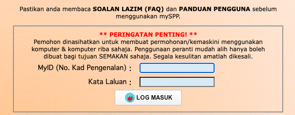 - Pergi ke laman https://myspp.spp.gov.my/myspp/