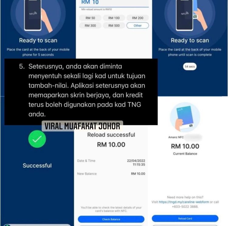 Berikut adalah panduan menambahnilai kad TnG baharu menggunakan teknologi NFC dengan mudah: