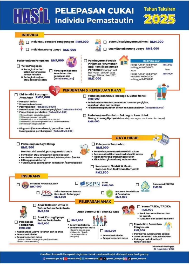 Pelepasan Cukai 2025: Senarai Lengkap Yang Anda Boleh Tuntut Untuk Kurangkan Cukai Pendapatan