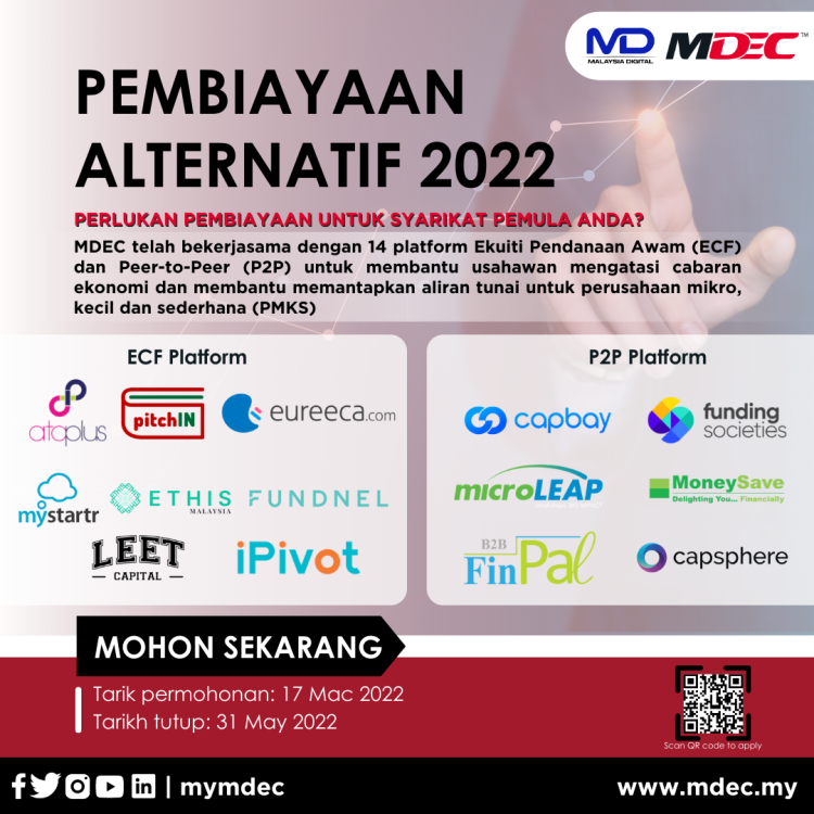 Untuk maklumat lanjut berkenaan pembiayaan alternatif MDEC, anda boleh terus ke laman www.mdec.my.