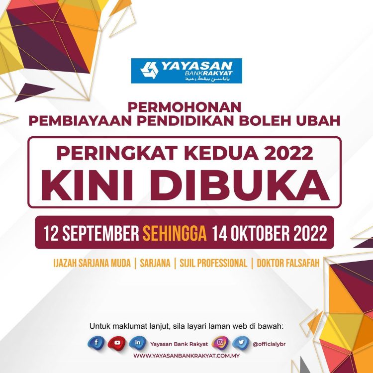 Permohonan Pembiayaan Pendidikan (PPBU) Yayasan Bank Rakyat Dibuka