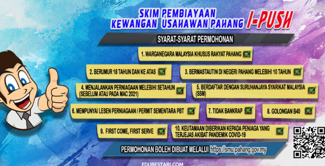 - Nama pembiayaan: Skim Pembiayaan Kewangan Usahawan Mikro Negeri Pahang (I-PUSH)