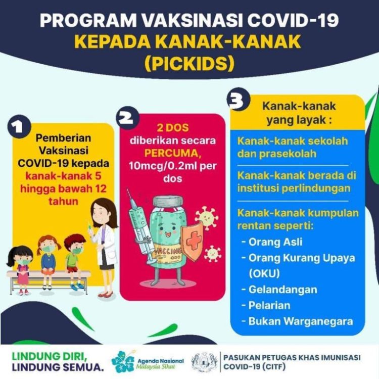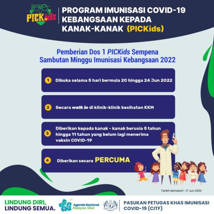 PICKids: Pemberian Vaksin Kanak-Kanak Dibuka Semula Selama 5 hari Bermula 20 Jun