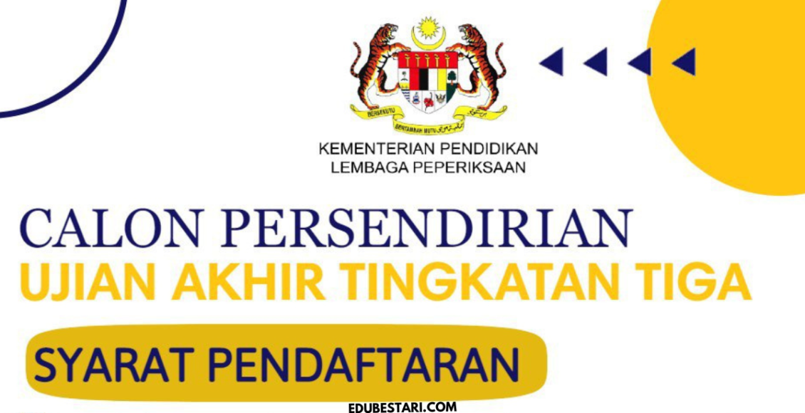 Kementerian Pendidikan Malaysia (KPM) telah maklumkan bahawa pendaftaran calon persendirian untuk menduduki Ujian Akhir Tingkatan 3 tahun 2023 kini telah dibuka. Calon persendirian yang berkelayakan bolah buat permohonan sepanjang tempoh permohonan dibuka.