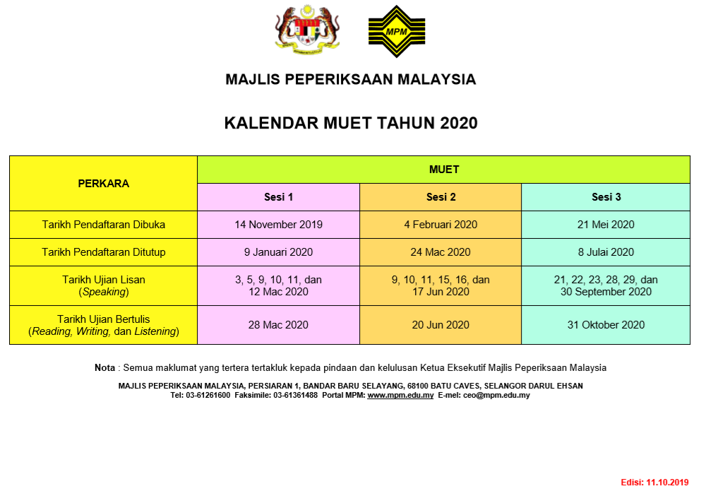 | 👉Portal Rasmi MPM 👉Kalendar MUET 2020 Rasmi |