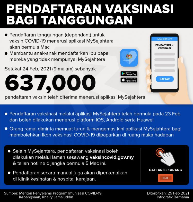 Ikut panduan berikut untuk mendaftar vaksinasi Covid-19 untuk tanggungan: