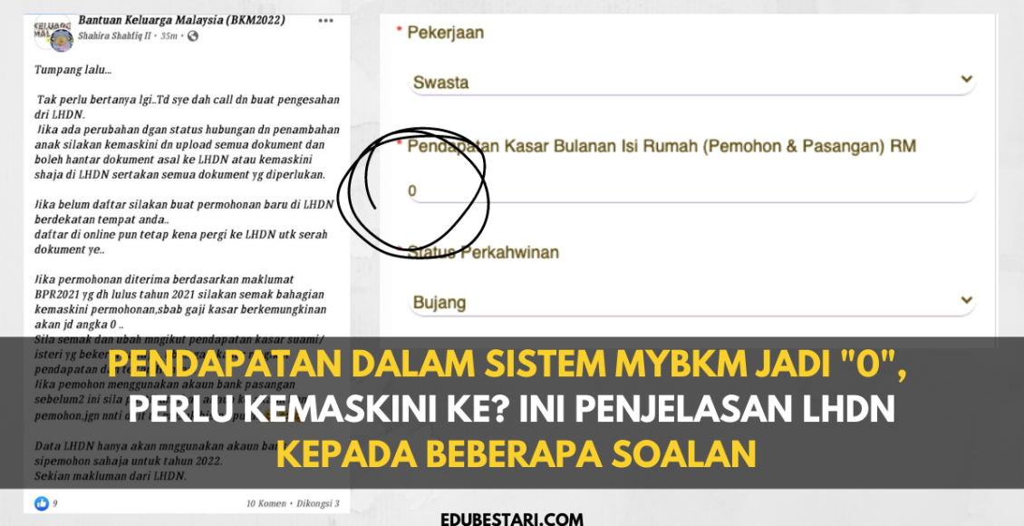 Ramai juga individu yang semak semula maklumat di MyBKM dan mendapati pendapatan jadi angka “0”. Apa perlu buat, perlu ke kemaskini dan masukkan pendapatan asal? Rujuk penjelasan LHDN di bawah: