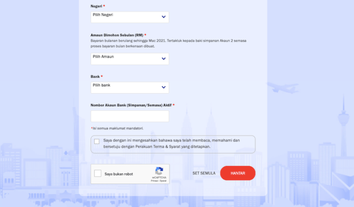 Sila Pastikan Nombor MyKad dan Nombor Telefon Bimbit adalah betul dan tepat. Permohonan melalui e-mel/ pos akan mengambil masa bagi memastikan butirannya adalah betul dan tepat. Semakan status permohonan boleh dibuat dari semasa ke semasa.
