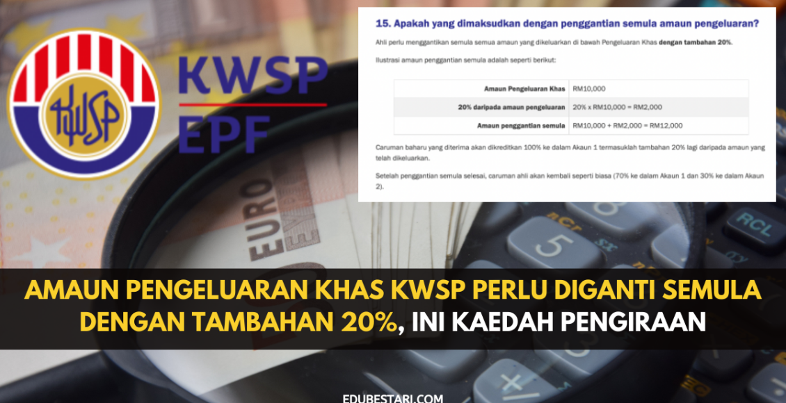 Ahli perlu menggantikan semua semua amaun yang dikeluarkan di bawah Pengeluaran Khas dengan tambahan 20%. Ilustrasi amaun penggantian semula adalah seperti berikut: